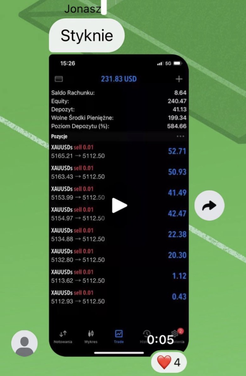 "Jestem w akademii od jakoś 4 miesięcy. Zaczynałem z 1000 zł i do tej pory udało mi się wyciągnąć około 2500 zł zysku. Nie zawsze wszystko wchodzi idealnie, ale wiedza którą dostałem dużo zmieniła w moim podejściu do rynku."