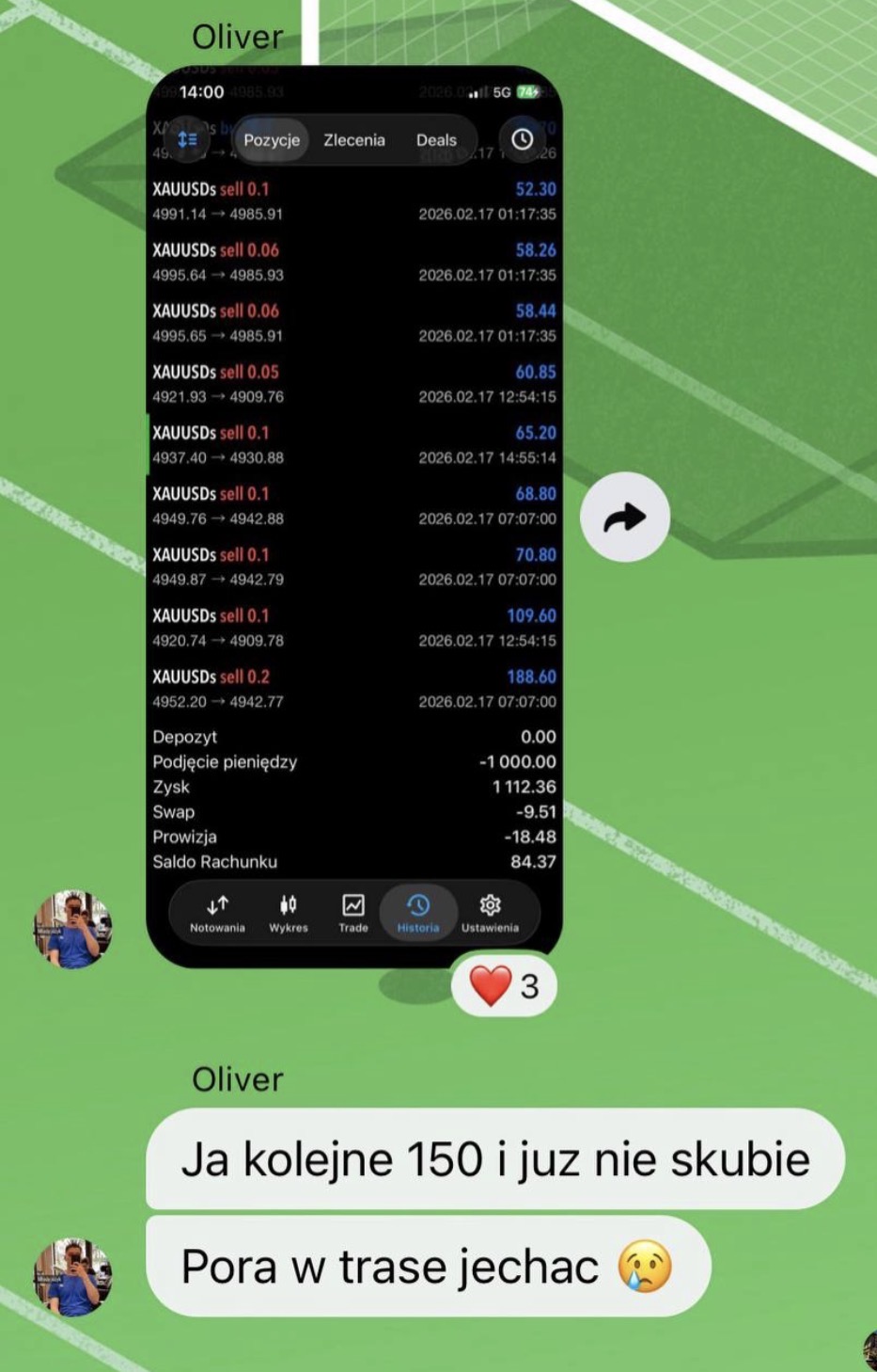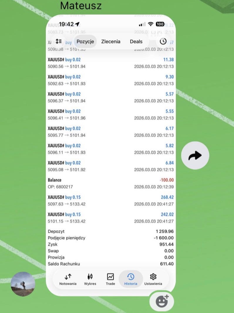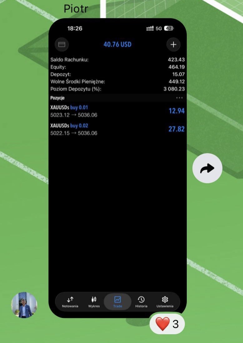 "Jestem w Traders Academy od około 2 miesięcy. Na początku miałem mały kapitał i bardziej traktowałem to jako naukę niż zarabianie. Z czasem zacząłem lepiej rozumieć rynek i pojawiły się pierwsze sensowne wyniki. Fajne jest to, że można liczyć na pomoc innych osób z community."